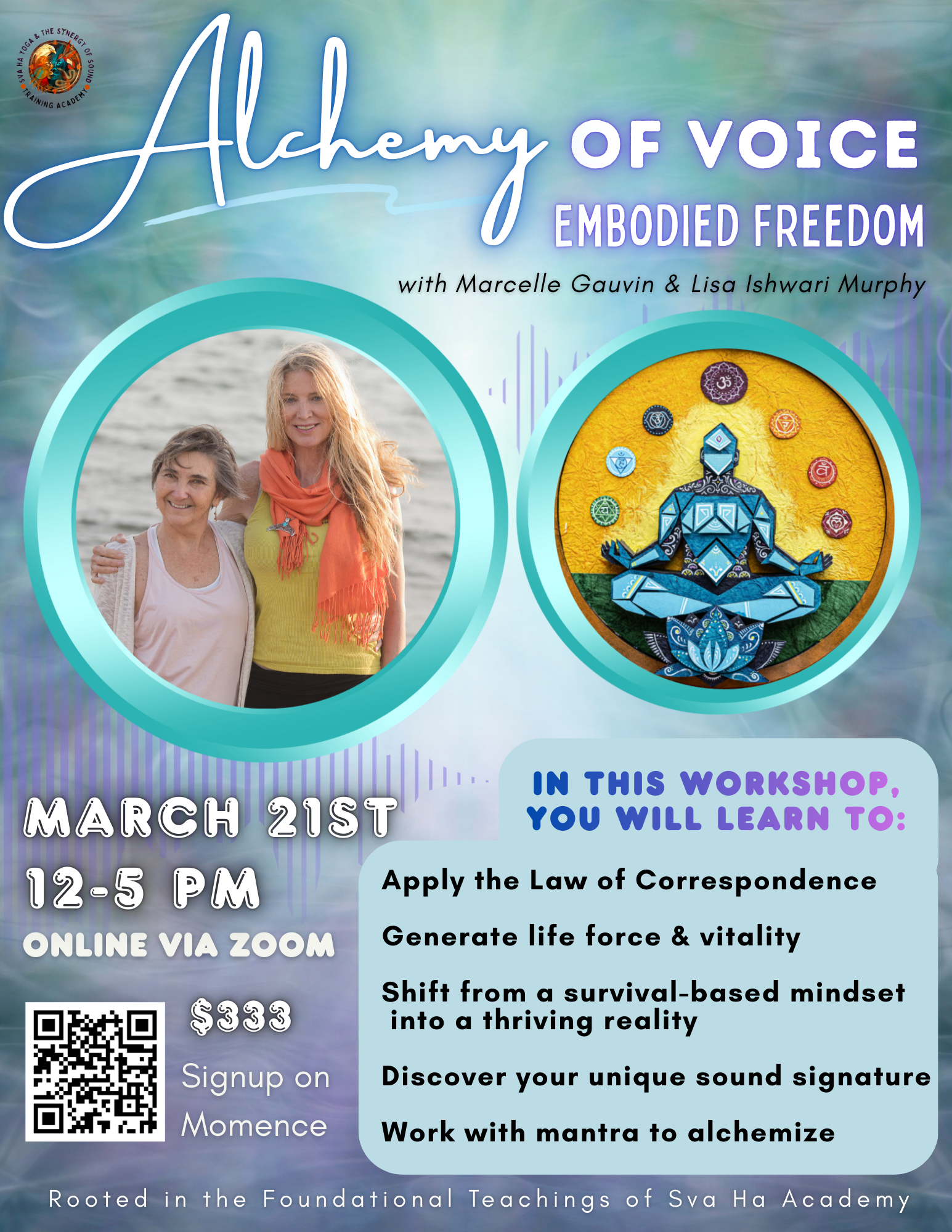 When its true properties of the voice are understood, it can be consciously harnessed to generate profound, life-changing results in both our inner and outer worlds. Join Lisa Ishwari Murphy and Marcelle Saraswati Gauvin for a day-long virtual experience designed to activate the full potential of this sacred instrument This workshop brings together a diverse, international community to explore the ancient formulas of the yogic Rishis—timeless teachings that reveal the foundations of vocal strength, vitality, and freedom.
